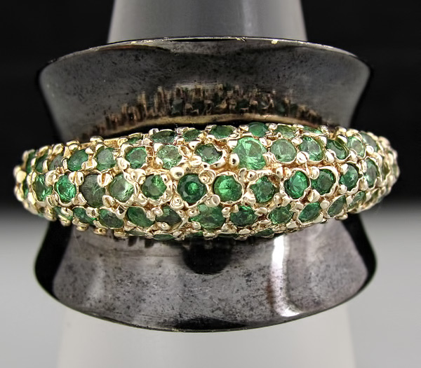 Кольцо из серебра 925 пробы с цаворитами гранатами.Серебро 925, Золочение, Чернение Инкрустация: Цаворит гранат Вес изделия: 14,4 грамм Размер: 18