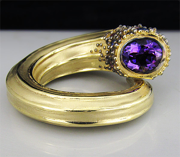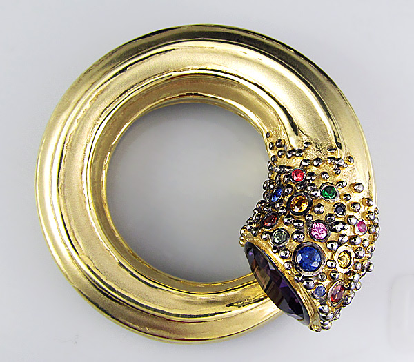 Серебро 925, Золочение, ЧернениеИнкрустация: Аметист, Сапфир, Цаворит гранатВес изделия: 41,3 граммРазмер: 48×45 мм