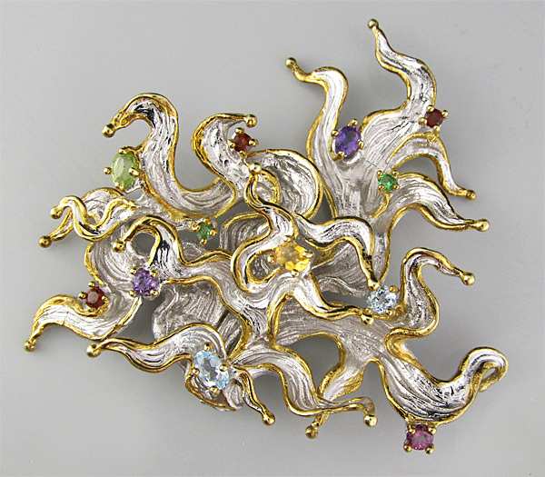 Серебро 925, Золочение, РодированиеИнкрустация: Аметист, Гранат, Перидот, Топаз, Цаворит гранат, ЦитринВес изделия: 23,6 граммРазмер: 61×55 мм