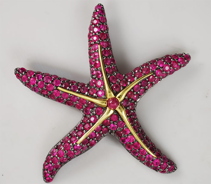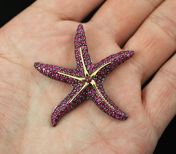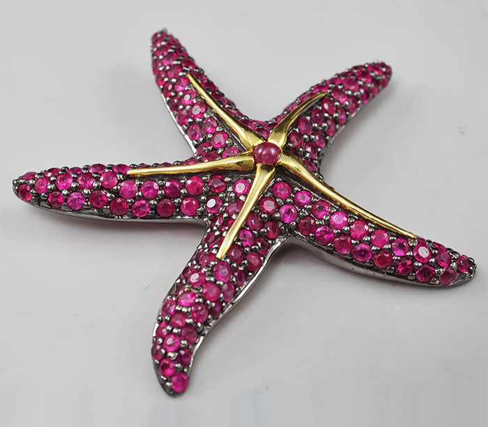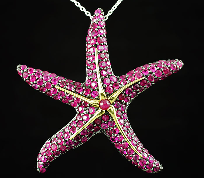 Кулон из черненого стерлингового серебра 925 пробы с пурпурными сапфирами. Вес — 10,6 гр. Размер кулона — 47×44 мм. Выборочное золочение