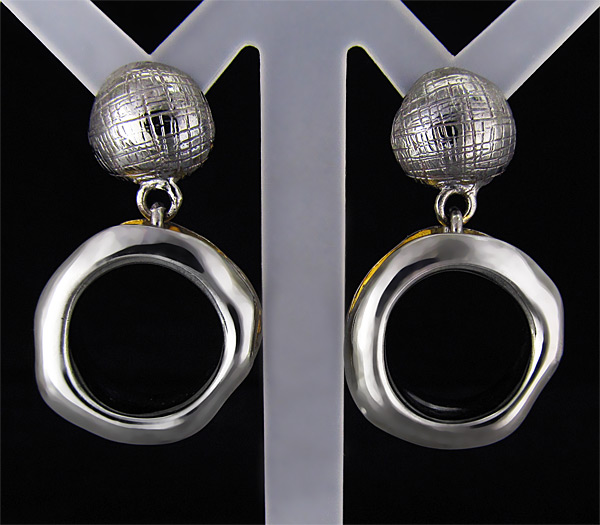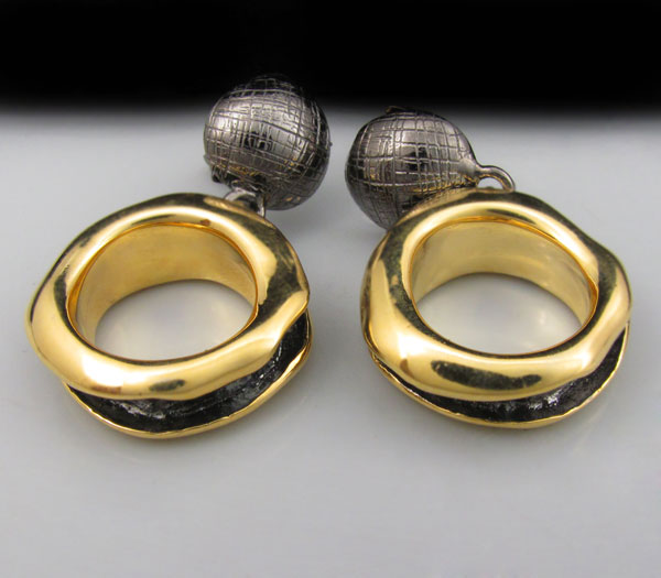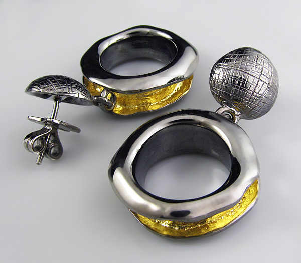Серьги из черненого стерлингового серебра 925 пробы. Вес — 14,8 гр. Размер серег — 35×22 мм. Выборочное золочение.