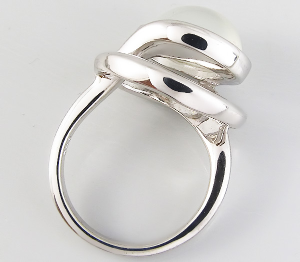 Кольцо из родированного стерлингового серебра 925 пробы с лунным камнем. Размеры вставки 14×10 мм. Площадка 20×20 мм, высота 14 мм. Вес изделия 9,7 гр. Размер 17,75.