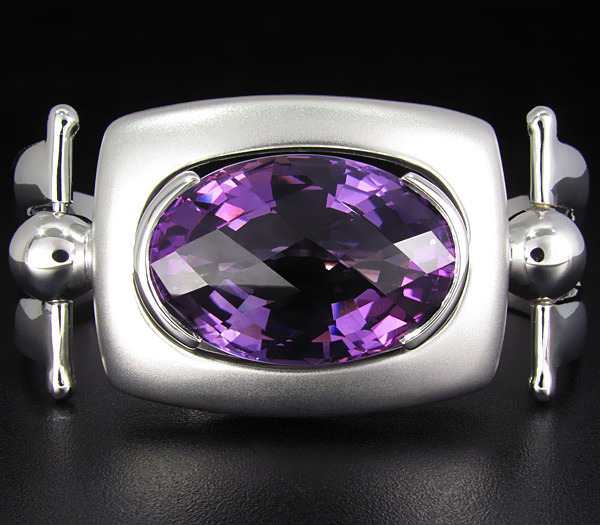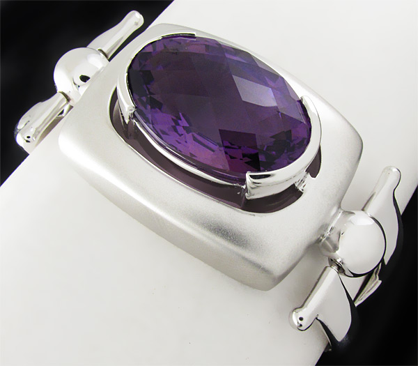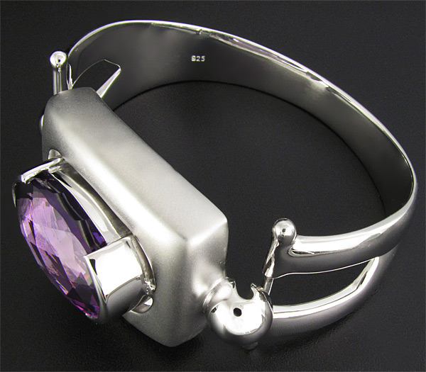Вашему вниманию предлагается массивный браслет из стерлингового серебра (925 проба) с превосходным крупным уругвайским аметистом на матированной площадке! Размеры вставки 25 х 17 мм. Длина внутренней окружности 165 мм, ширина 29 мм. Вес изделия 83,4 г.
