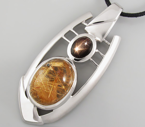Вашему вниманию предлагается кулон из стерлингового серебра (925 проба) с крупным кабошоном золотистого рутилового кварца и звездчатым сапфиром! Изделие частично матировано. Площадка кулона 59 х 25 мм. Вес 23,3 г. Ниже приводятся размеры вставок.
