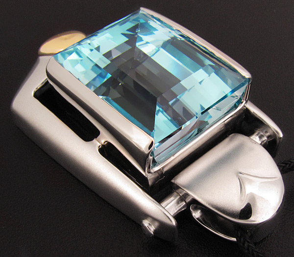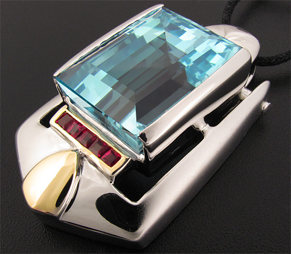 Кулон с крупным голубым топазом авторской огранки и рубинами!