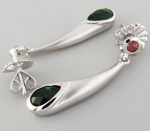 Вашему вниманию предлагаются серьги из стерлингового серебра (925 проба) с хромово-зелеными и розовыми турмалинами! Размеры вставок 3 мм и 8 х 4 . Площадка серег 37 х 8 мм. Вес пары 7,3 г.