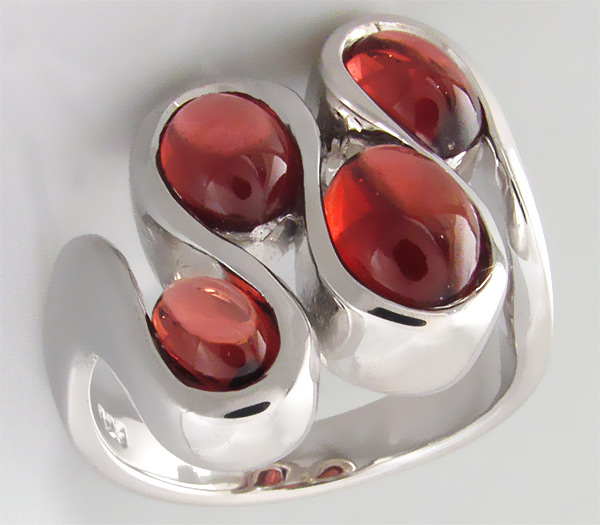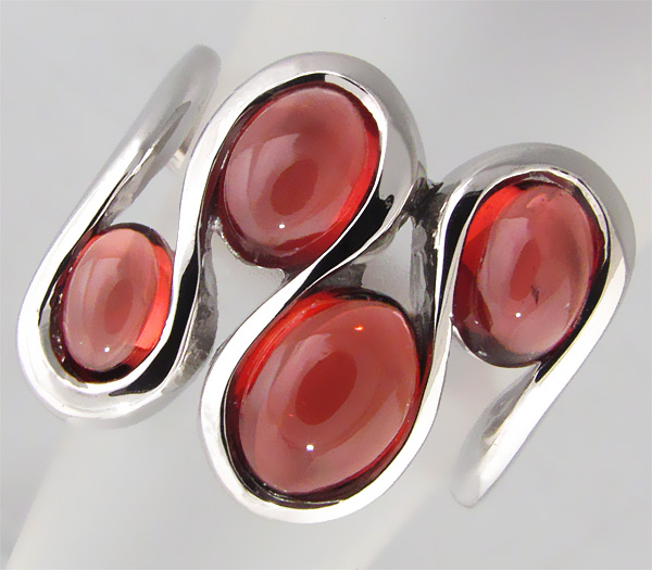 Вашему вниманию предлагается кольцо из стерлингового серебра (925 проба) с кабошонами красных турмалинов! Размеры вставок 5 х 3 мм, 6 х 4 мм и 7 х 5 мм. Площадка 18 х 18 мм, высота 6 мм. Вес изделия 9,2 г. Размер 17,75.