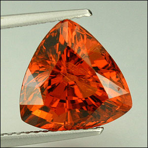 Эсспессандит (Mn2FeAl2(SiO4)3) — сочно-оранжевого цвета.