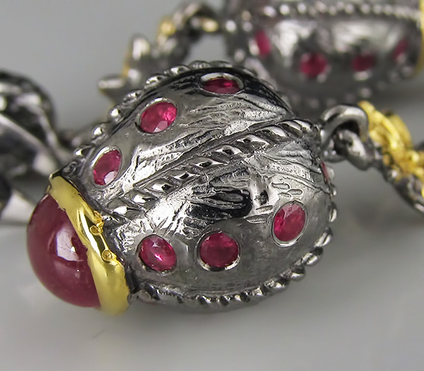 Серьги из черненого стерлингового серебра 925 пробы с сапфирами. Вес — 10,2 гр. Размер серег — 38×13 мм. Выборочное золочение.