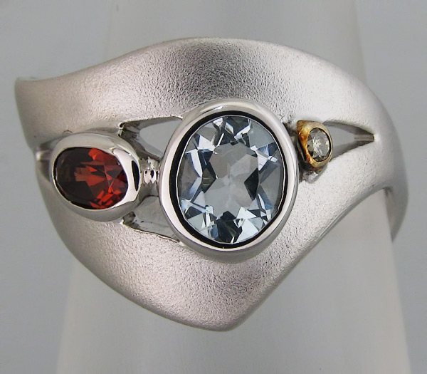 Кольцо с топазом, гранатом и бриллиантом.